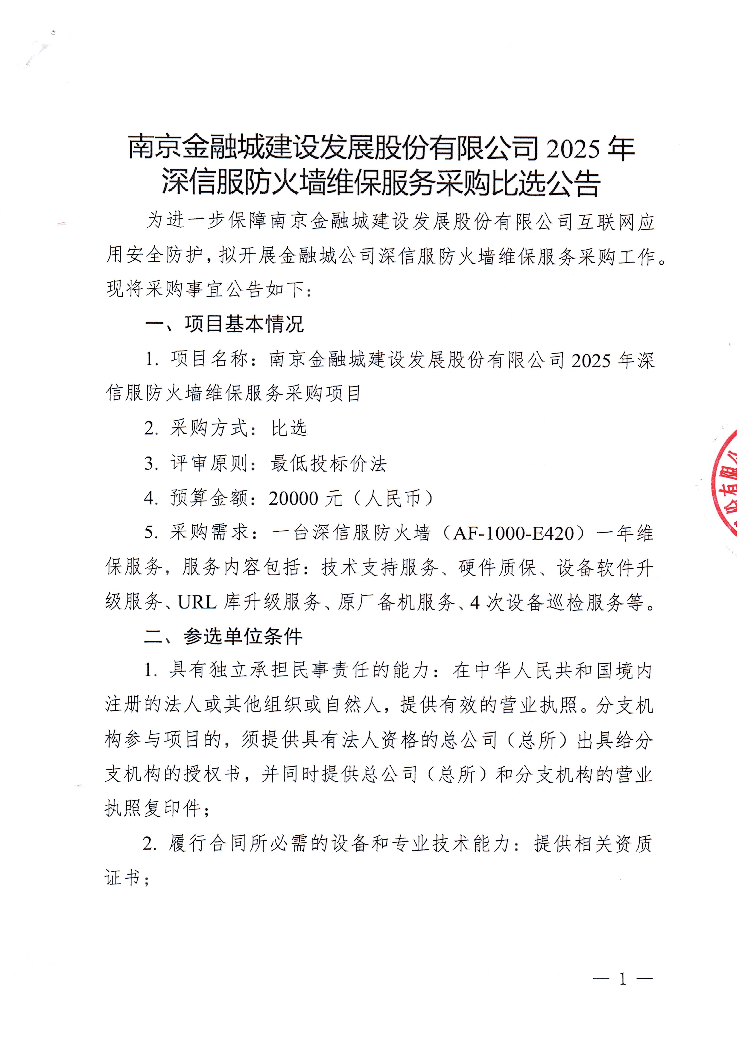 上一篇:2025年深信服防火墙维保服务采购比选结果公告