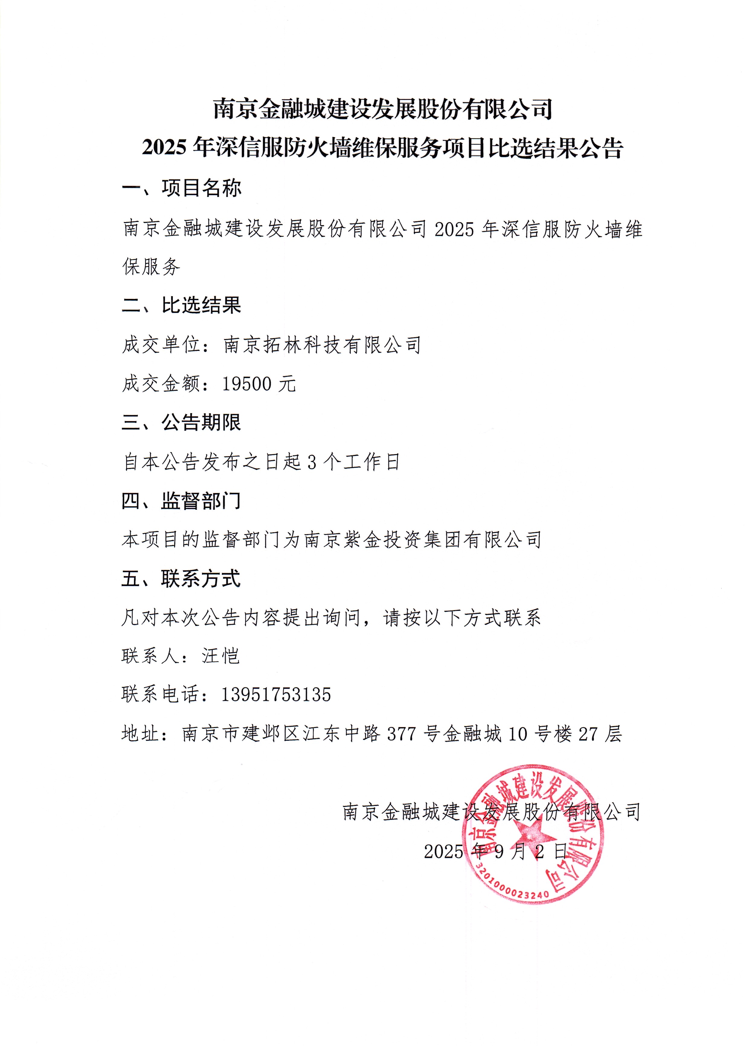 下一篇:2025年深信服防火墙维保服务采购比选公告