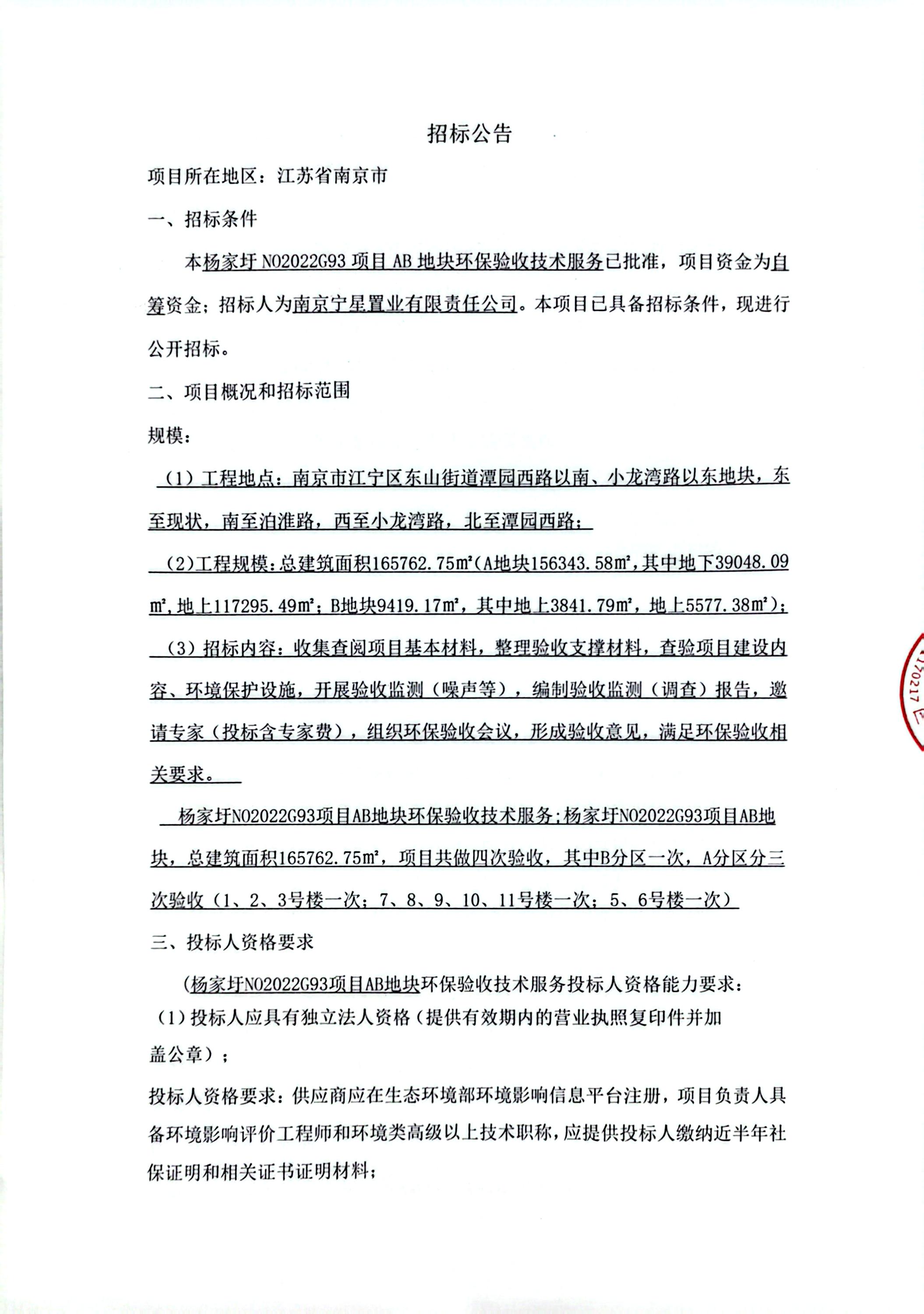 NO.2022G93项目AB地块环保验收技术服务招标公告