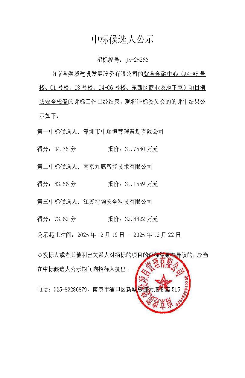 下一篇:金融城一期消防安全检查服务中标候选人公示